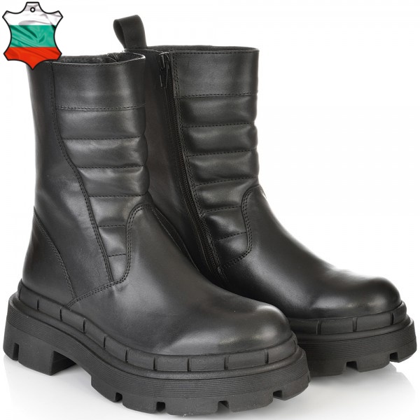 Страхотни черни дамски боти от естествена кожа с цип.Тези