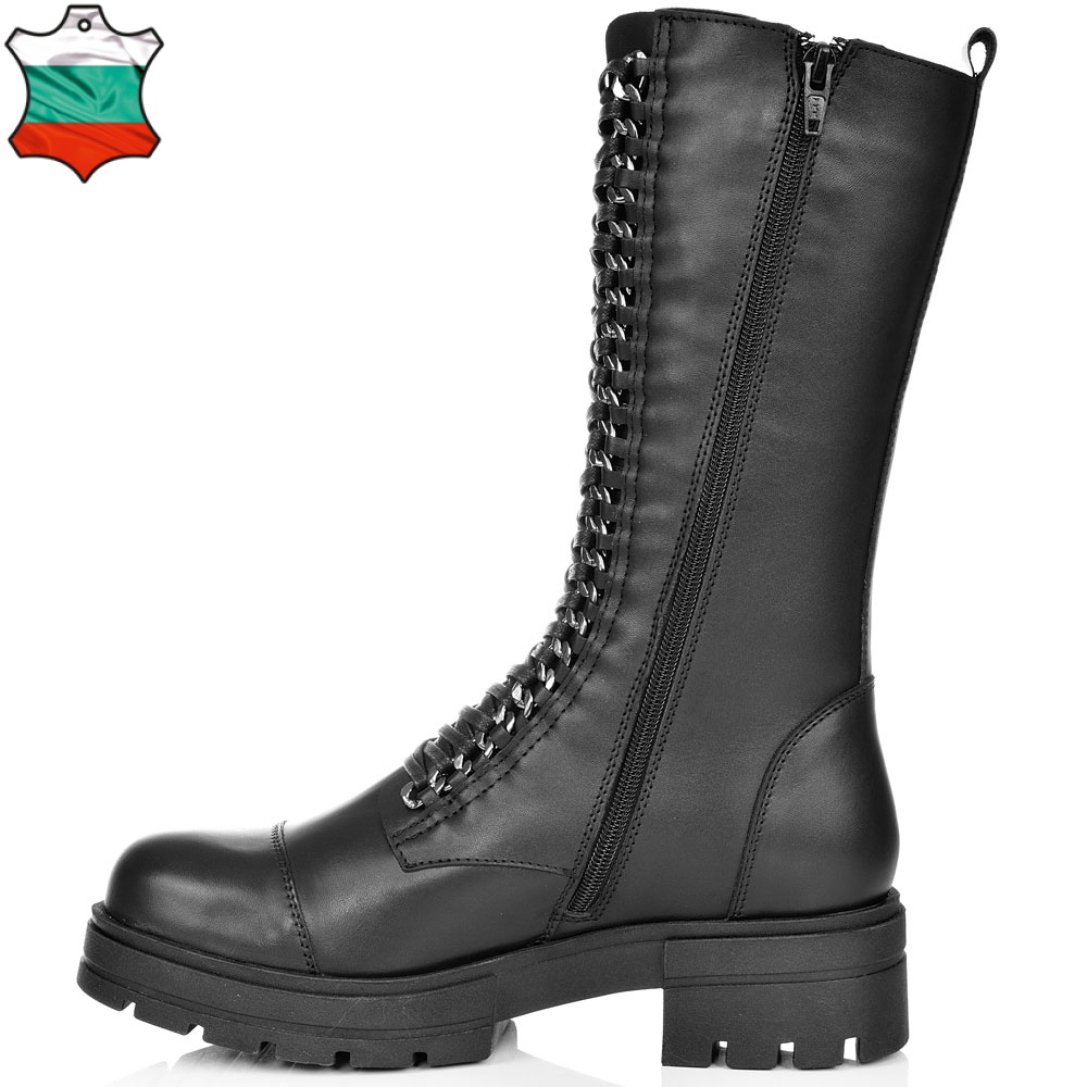 дамски ботуши от естествена кожа в класическо черно с ефектни връзки. Моделът е