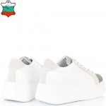 ДАМСКИ КЕЦОВЕ НА ПОВДИГНАТО ХОДИЛО ОТ ЕСТЕСТВЕНА КОЖА С БРОКАТ-7073A-БЯЛО/СРЕБЪРНО