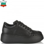 ДАМСКИ КЕЦОВЕ НА ПОВДИГНАТО ХОДИЛО ОТ ЕСТЕСТВЕНА КОЖА С БРОКАТ-7073A-ЧЕРНИ