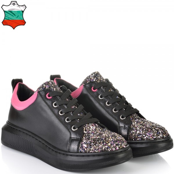 Защото блясъкът ти отива! Смела и изключително свежа комбинация от черна кожа, цикламен лак и така актуалния за сезона брокат в различени цветове. С ефектния си дизайн и в смела комбинация с тях ще блестиш където и да си. Вътрешната част на модела е изцяло от естествена кожа, а стелката е Footbed, която е изключително мека и се оформя по стъпалото на принципа на мемори пяна. В допълнение моделът е с олекотено полиуретаново ходило, което перфектно допълва комфорта на модела.
