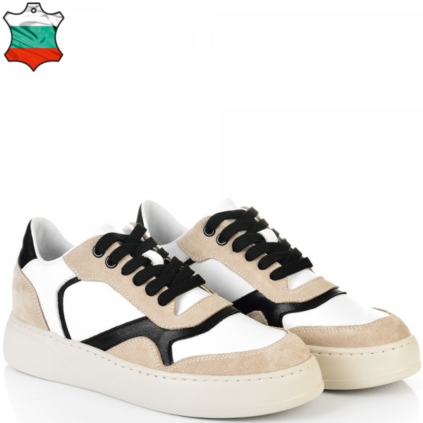 ДАМСКИ КЕЦОВЕ ОТ ЕСТЕСТВЕНА КОЖА-D5065-БЯЛО/БЕЖОВО/ЧЕРНО