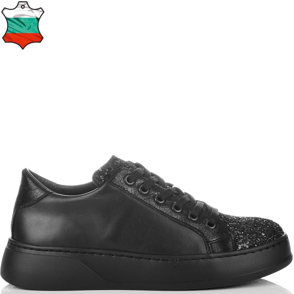 Зашеметяващи кецове с ефектен брокат в черен цвят, в класическо съчетание на черна естествена кожа и черен лак. Блясъкът винаги е на мода, а с тези кецове просто ще заблестите. Вътрешната част на модела също е изцяло от естествена кожа, а стелката е Footbed, която е изключително мека и се оформя по стъпалото на принципа на мемори пяна. В допълнение моделът е с олекотено полиуретаново ходило, шито и лепено, което перфектно допълва комфорта на модела и следва естествената линия на движение на краката. С тях ще бъдете просто неотразима.