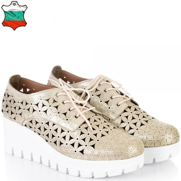 ДАМСКИ ОБУВКИ НА ПЛАТФОРМА ОТ ЕФЕКТНА ЕСТЕСТВЕНА КОЖА-D3032A-ЗЛАТНИ