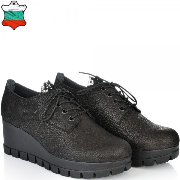 ДАМСКИ ОБУВКИ НА ПЛАТФОРМА ОТ ЕСТЕСТВЕНА КОЖА С ДАНТЕЛА-D3090A-ЧЕРНИ