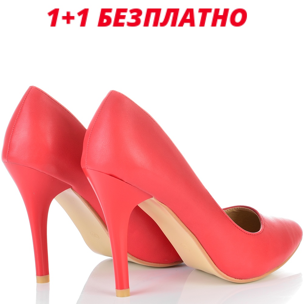 Дамски червени обувки на висок ток. Височина на тока 10см. Със заострен връх. Удобни, подходящи за официални поводи. Дължина на стелката на №36–23см. Всеки следващ номер е с 0,5см. по-голям.