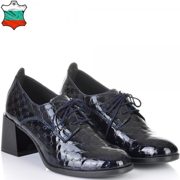 ДАМСКИ ОБУВКИ НА ТОК ОТ ЕСТЕСТВЕН ЕФЕКТЕН ЛАК-JANET2-853-ТЪМНО СИНИ
