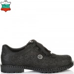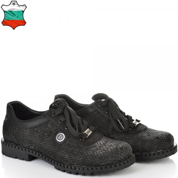 Класически модел дамски обувки с връзки на лек ток в ефектна черна кожа. Страхотен модел за сезона изключително стилен и удобен с тях ще се чувствате неотразима. Лесно се съчетава с всякакави тоалети и е подходящ както за ежедневието така и за официални случаи и поводи. Стелката на модела е с три меки и анатомични зони – пета, свод и възглавничка. Моделът е много лек, защото е изработен от олекотено и гъвкаво ходило, което следва естествената линия на движение на походката.