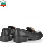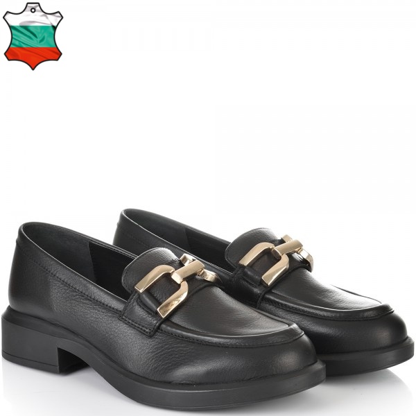 Дамски обувки тип мокасина в черен цвят на черно ходило с метален златен елемент. Моделът е изработен от много мека и качествена естествена кожа, която прилепва и се оформя по крака. Подходящи са както за есента така и за пролетта. Ходилото е много стабилно и перфектно допринася за цялостния комфорт на модела.