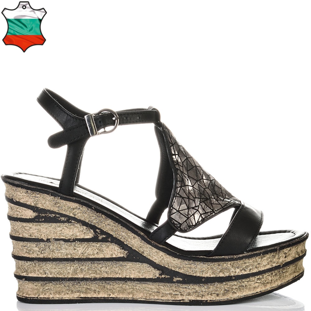 ДАМСКИ САНДАЛИ НА ПЛАТФОРМА ОТ ЕСТЕСТВЕНА КОЖА-4172-ЧЕРНИ