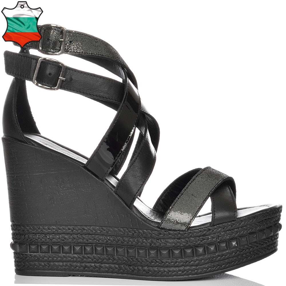 ДАМСКИ САНДАЛИ НА ПЛАТФОРМА ОТ ЕСТЕСТВЕНА КОЖА-4489-ЕФЕКТНИ-ЧЕРНИ