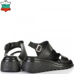ДАМСКИ САНДАЛИ НА ПЛАТФОРМА ОТ ЕСТЕСТВЕНА КОЖА-5095-ЧЕРНИ