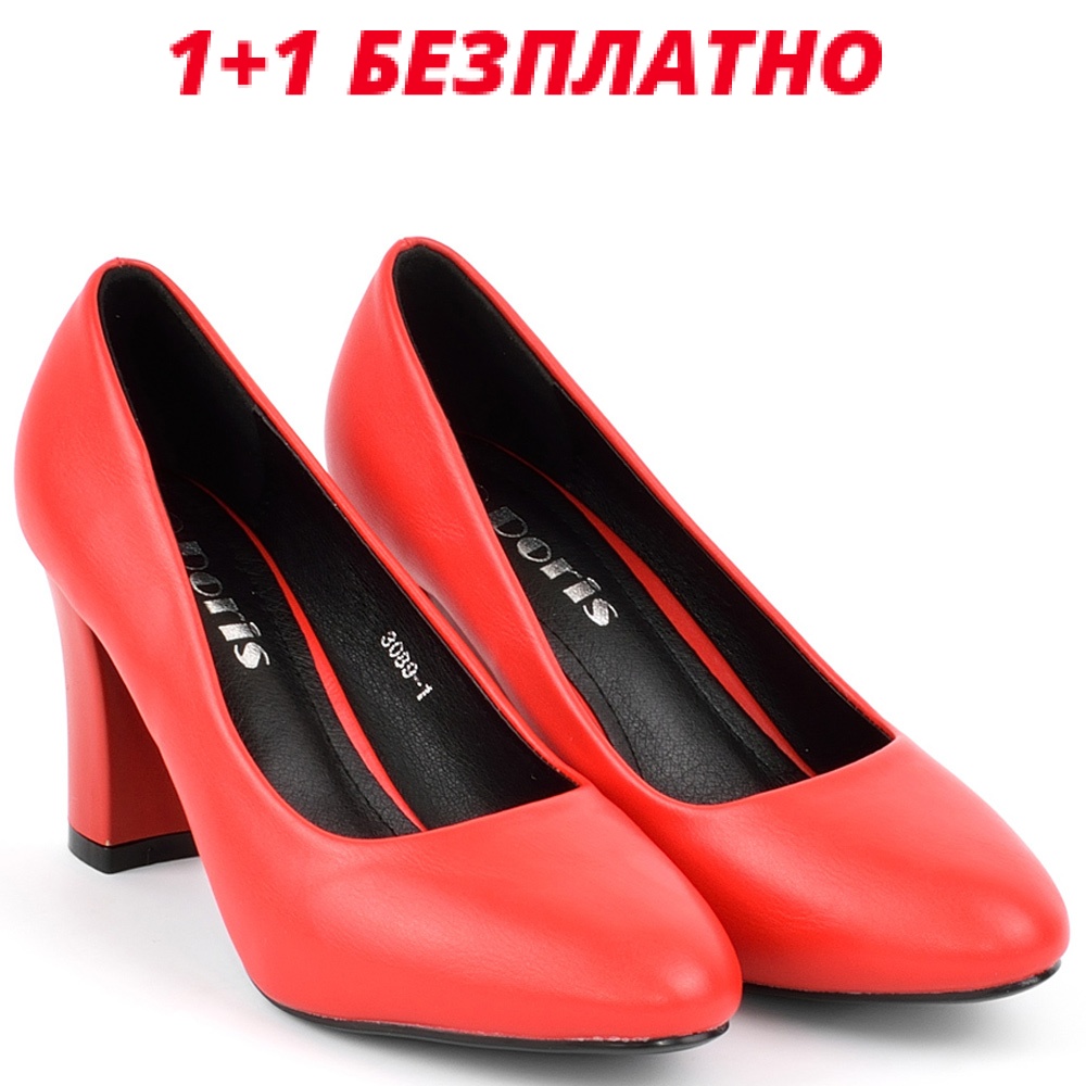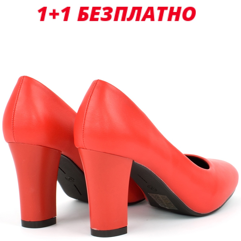 Дамски червени обувки на дебел и стабилен ток, моделът е със средна височина на тока, подходящ както са официални поводи така и за работа и ежедевието. Дебелина на подметката отпред-0,5см, ток-8см. Стелка:№35-23см. Всеки следващ номер е с 0,5см по-голям.